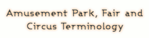 Below you will find a sampling of terms that you might find associated with amusement parks, carnivals, county fairs, state fairs, world fairs and circuses.