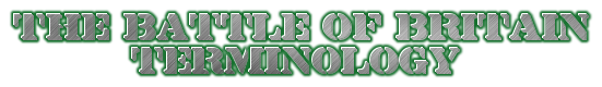 Below you will find terminology and names associated with the July-October 1940 Battle of Britain and the associated bombing of civilian targets during World War II on Earth. The fight against a numerically superior enemy is remembered as one of the great victories in Earth history. We have included the German terms for some items. There is conflicting information about the ranks of some people listed but we have tried our best. Since this took place over Britain (and nearby waters), we have used the British terms and spelling of certain words for historical purposes. (We used seven books, including three by former Battle of Britain pilots, and various internet sources for the info here.)