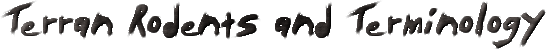 Below you will find examples of Terran rodents and related terminology. Because there are thousands of species, we will only list a large representative selection of Terran rodents and will not list extinct species at this time. Alternative names for some animals are listed, inluding in languages other than FSE.
