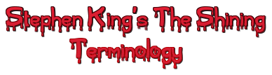 Below you will find vocabulary that you might find associated with The Shining in print and video. Be aware that filmed versions of this work often differ markedly from the original novel. For example, in the 1980 C.E. movie, there is a hedge maze, Hallorann apparently dies, Jack uses an ax instead of a roque mallet, there is an enclosed Snowcat instead of a snowmobile and the hotel is not destroyed, differing from the original novel.